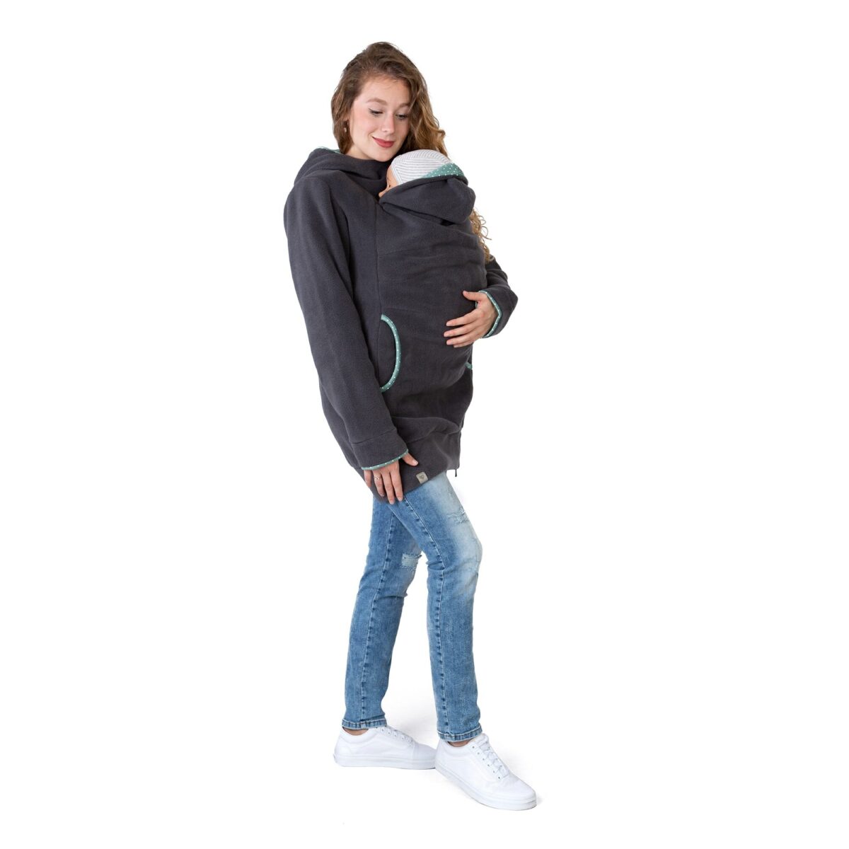 AHOI ist dein einfacher Einstieg ins Babytragen: leicht, warm und weich. Der lange Schnitt hält Bauch und Rücken warm, das elastische Polarfleece macht jede Bewegung mit. Mama und Baby haben jeweils eine gefütterte Kapuze, dazu einen durchgehenden 2-Wege-Reißverschluss und zwei gefütterte Taschen für Handy, Schlüssel & Co.
